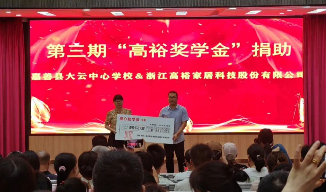 “高?!豹剬W(xué)金是由浙江高裕家居科技股份有限公司設(shè)立的專項獎學(xué)金。自2018年4月設(shè)立此獎學(xué)金以來,每年設(shè)20個名額,用于鼓勵大云本土優(yōu)秀學(xué)生。截至目前,累計捐贈了45萬元獎學(xué)金,已發(fā)放35萬元,惠及140名學(xué)生。